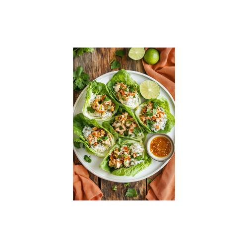 Now comes the fun part assembling your wraps! Take fresh, clean lettuce leaves (butter lettuce or romaine work best for wrapping) and lay them flat on a plate. Spoon a small amount of the chicken and rice mixture into each leaf, being careful not to overfill. A couple of spoonfuls is perfect for holding and folding. Drizzle a generous amount of the peanut sauce on top, and then garnish with chopped cilantro for freshness. If you like an extra crunch, sprinkle some chopped peanuts over everything. Once your wrap is loaded, fold the lettuce leaf like a taco or roll it up like a little bundle. They’re ready to enjoy!