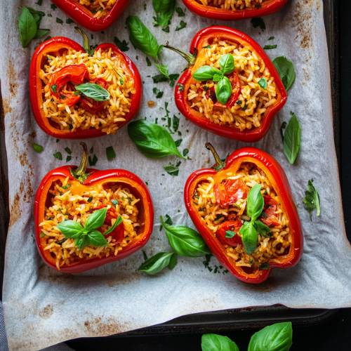• Don’t overstuff the peppers, the rice needs space to expand while cooking.