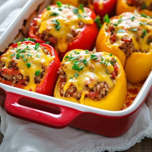 If you’re looking for a cozy, colorful, and super tasty meal, Stuffed Peppers with Tomato Sauce is one of my all-time favorites! These peppers are filled with juicy chicken, veggies, and rice, then cooked in a rich tomato sauce until everything is tender and packed with flavor. It’s like a warm hug in a bowl!